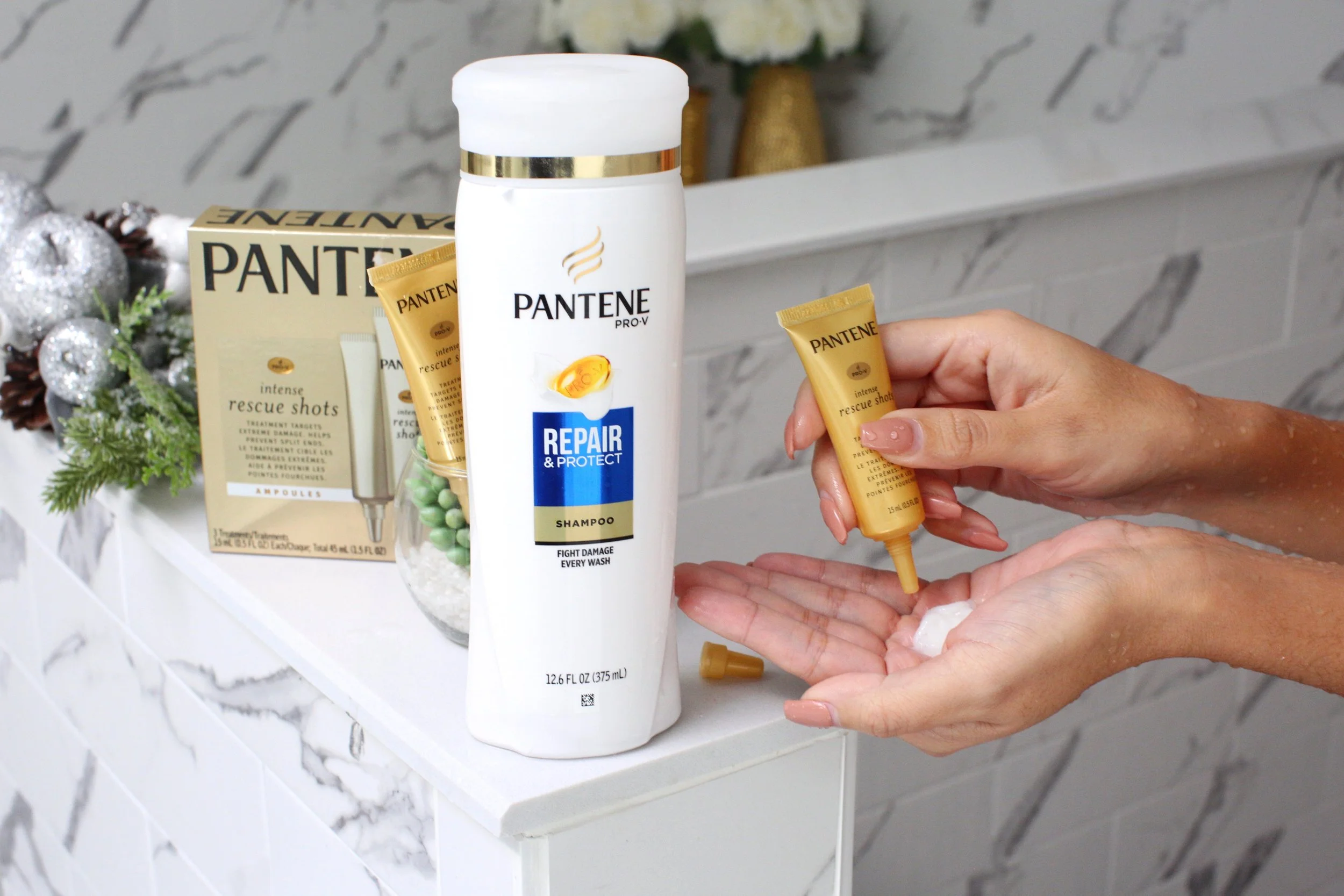 First, choose a Pantene shampoo that best suits your hair. For me, the Repair & Protect Shampoo is a must.